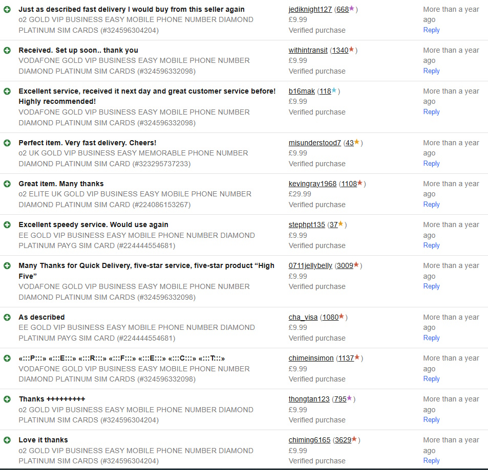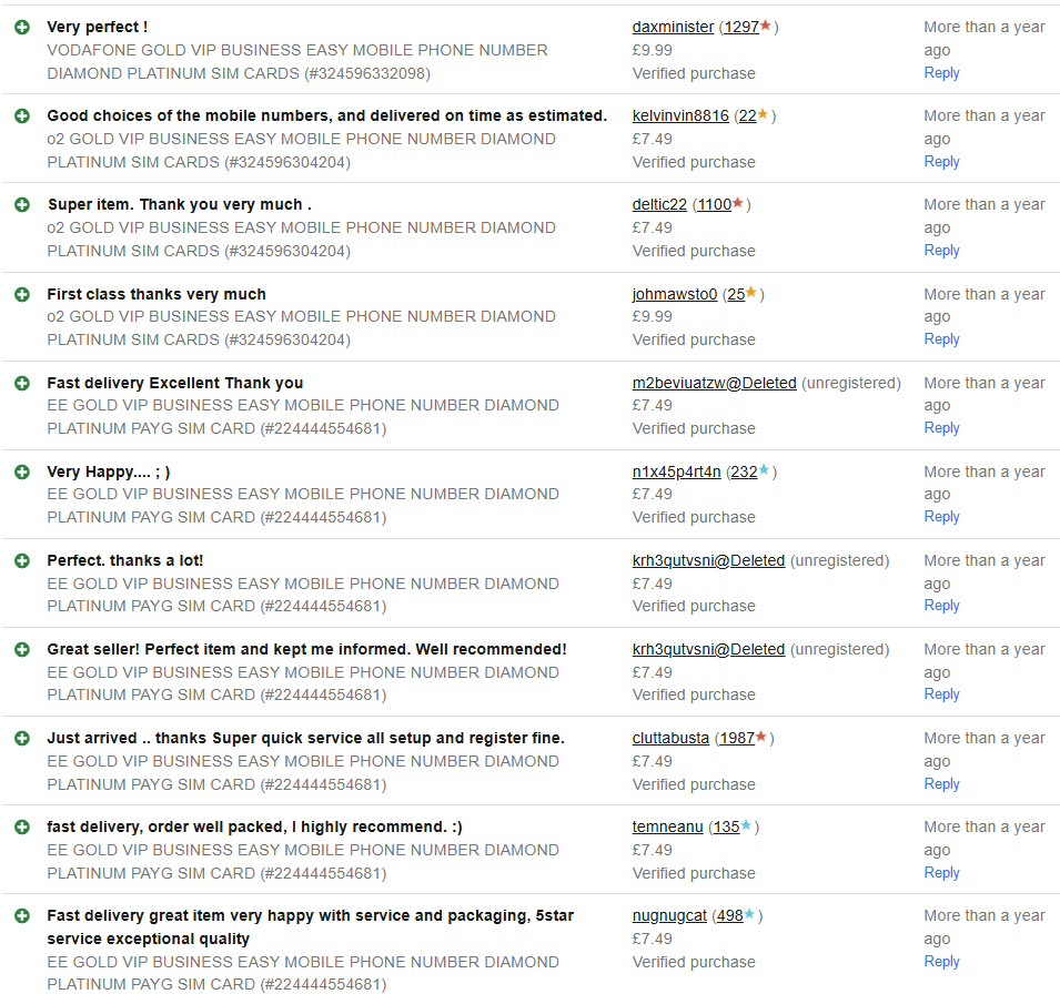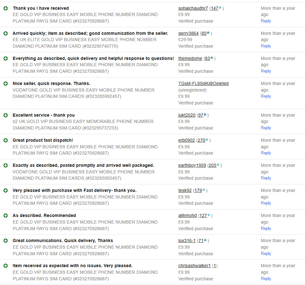 We’ve been helping people find their perfect UK pay-as-you-go Gold Numbers for years, trading under the names Unimobiles and 48 Hours Delivered on eBay and Amazon UK. Along the way, we’ve earned thousands of happy customers (just take a look at our eBay feedback!).